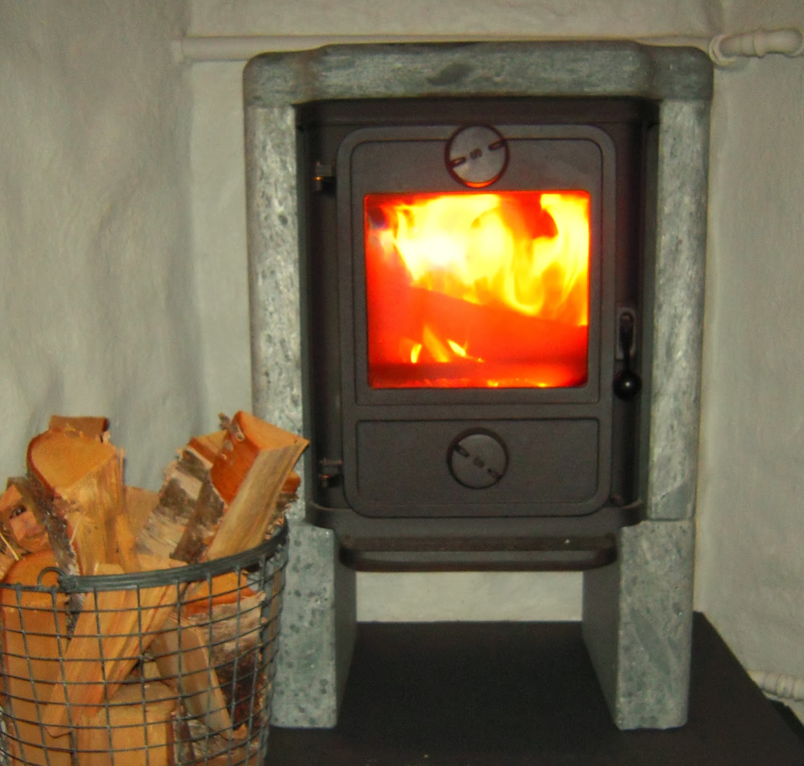 sovrum. Teven är utslagen – men fungerar om vi sätter på spisen.
